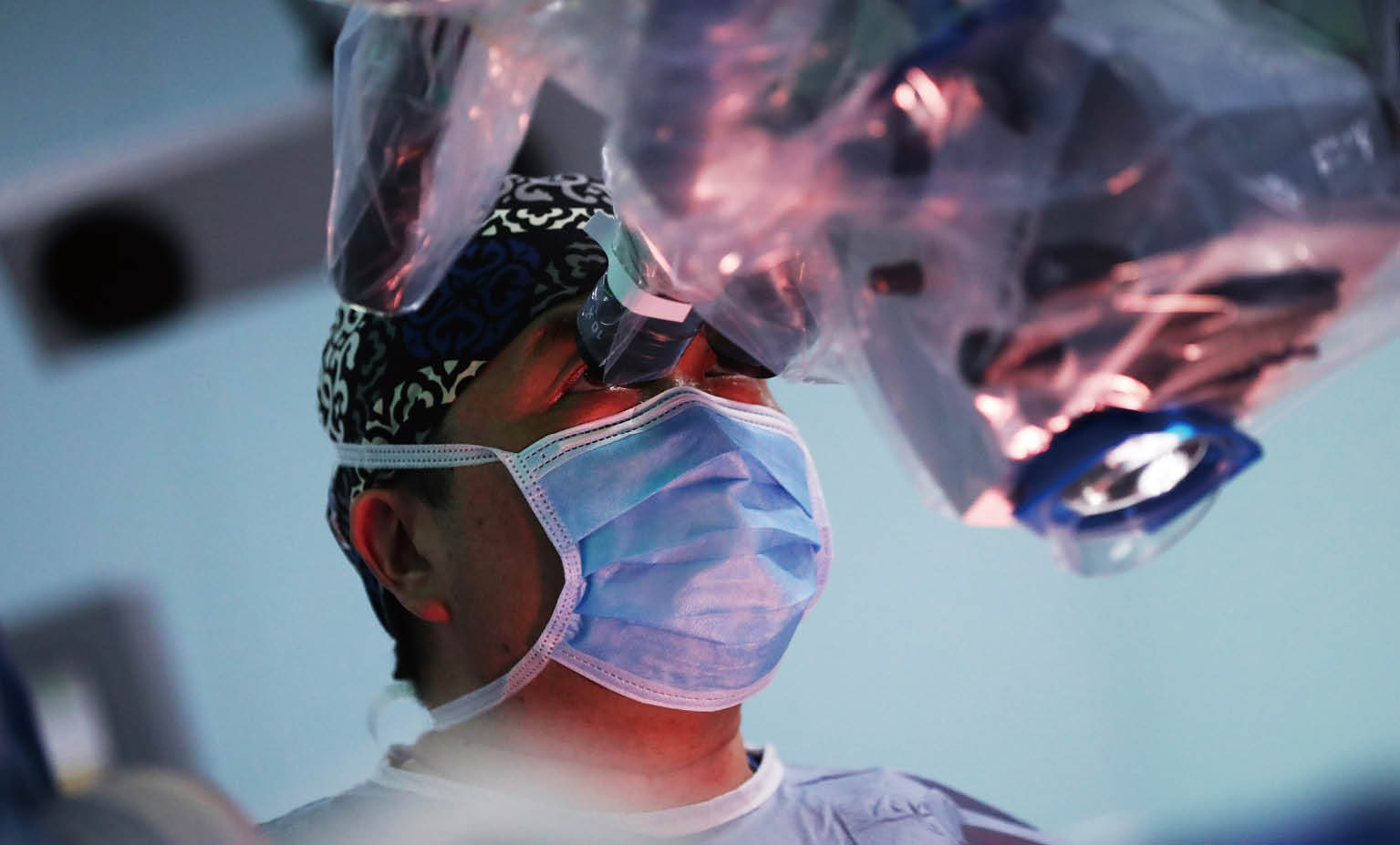 分子可視化手術(shù)導(dǎo)航系統(tǒng),使“不可見”的病理診斷數(shù)據(jù)真正“ 可見”,實(shí)現(xiàn)了針對(duì)神經(jīng)腫瘤分子級(jí)別的切除。圖為毛穎教授手術(shù)